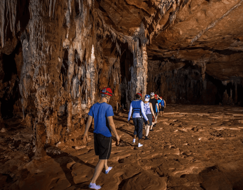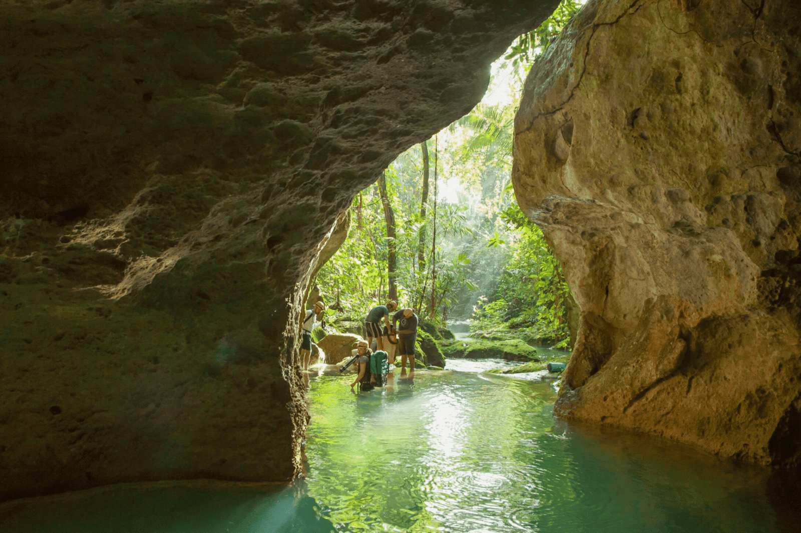 Hidden within the lush rainforest, your adventure begins with a scenic hike through the jungle, crossing crystal-clear streams along the way. As you reach the cave entrance, the real excitement begins, swim into the cave and venture into a mysterious underground world filled with towering chambers, ancient artifacts, and stunning rock formations.